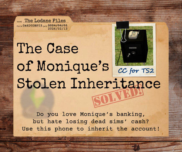 Credits: Monique for the original Hacked Computer, Safe mesh was stolen from Cashcraft, and I used their OG texture (+Simlish) to make a recolor. That is to say, it's recolorable. It's also visible in hood view, if that's important to you. Available on Residential and Community. Catalog under "Electronics / Misc" for $0.